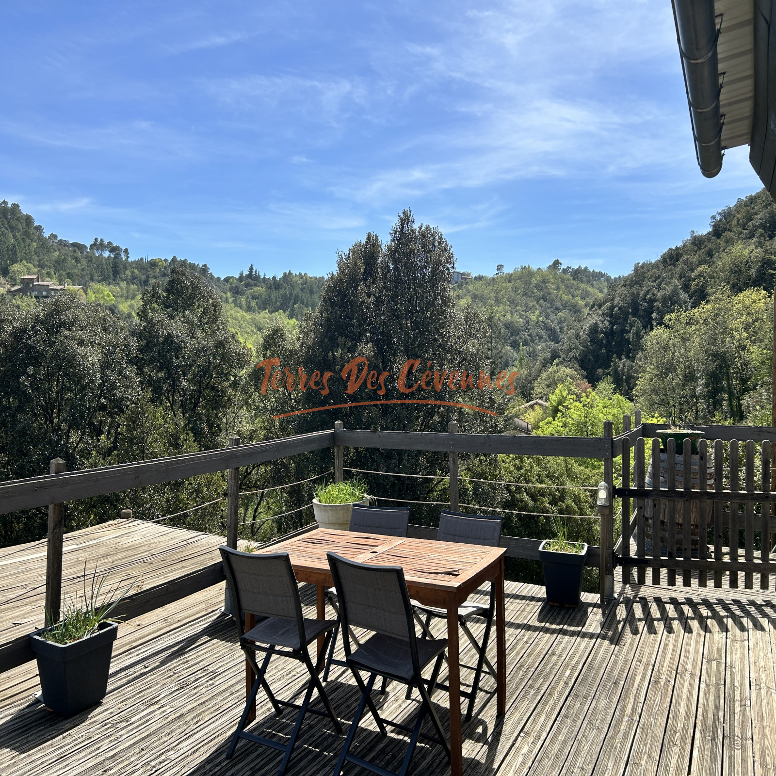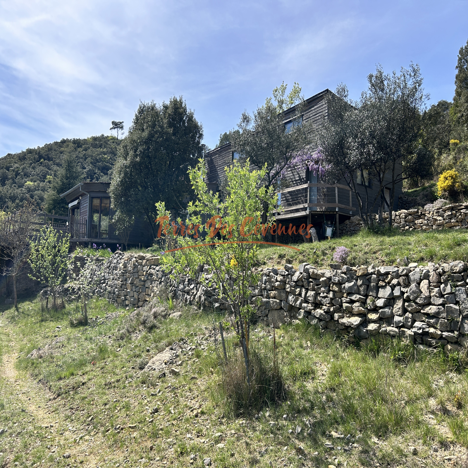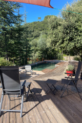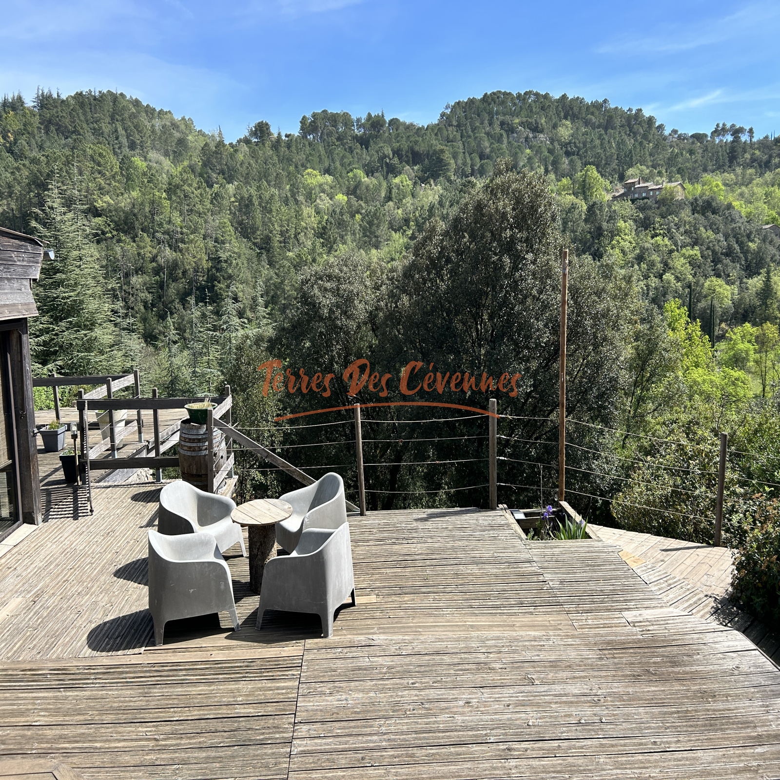 Implantée sur un terrain boisé d’environ 1,7 Ha, elle bénéficie d’une exposition plein sud et d’une magnifique vue panoramique à 180°.