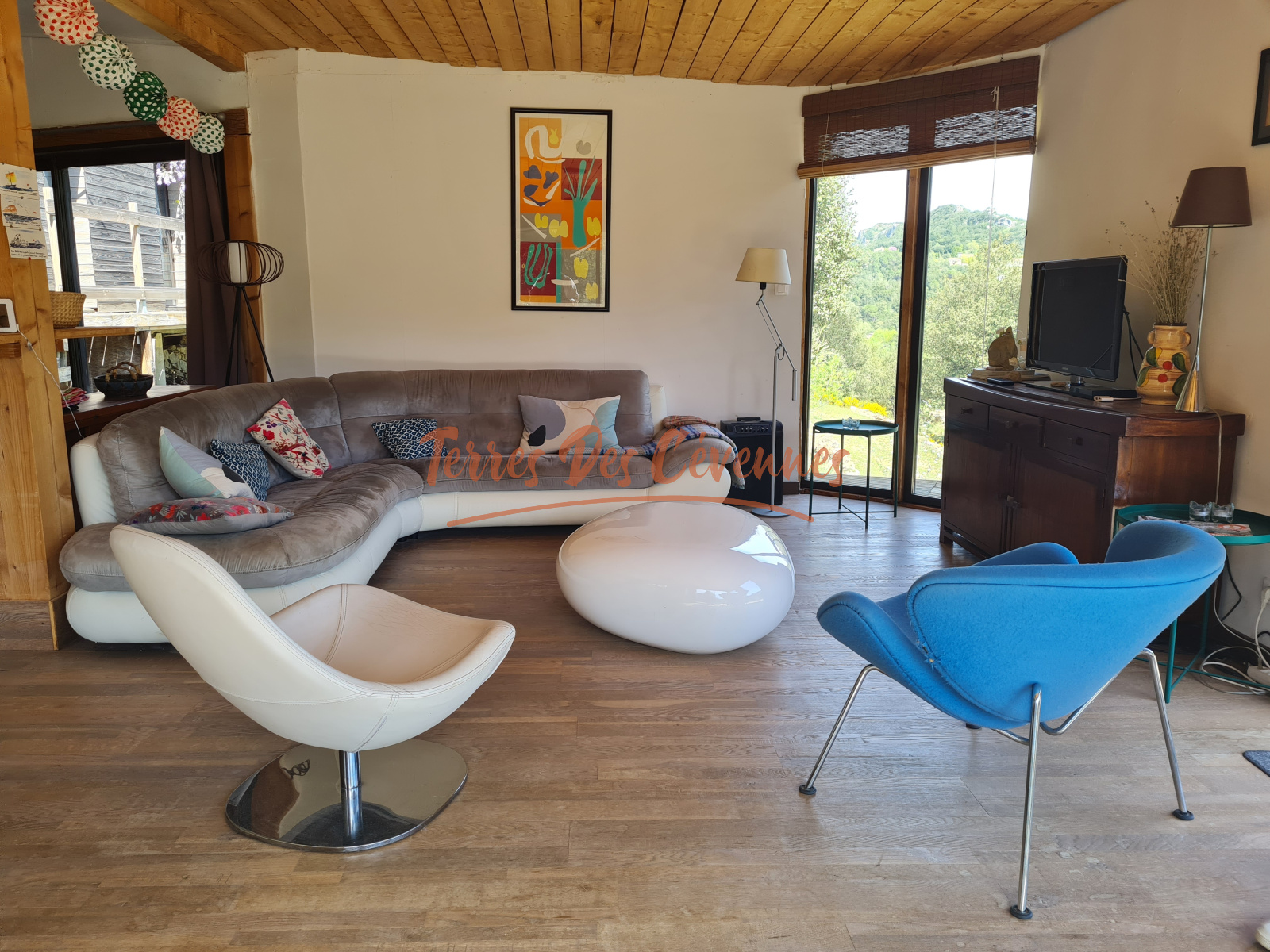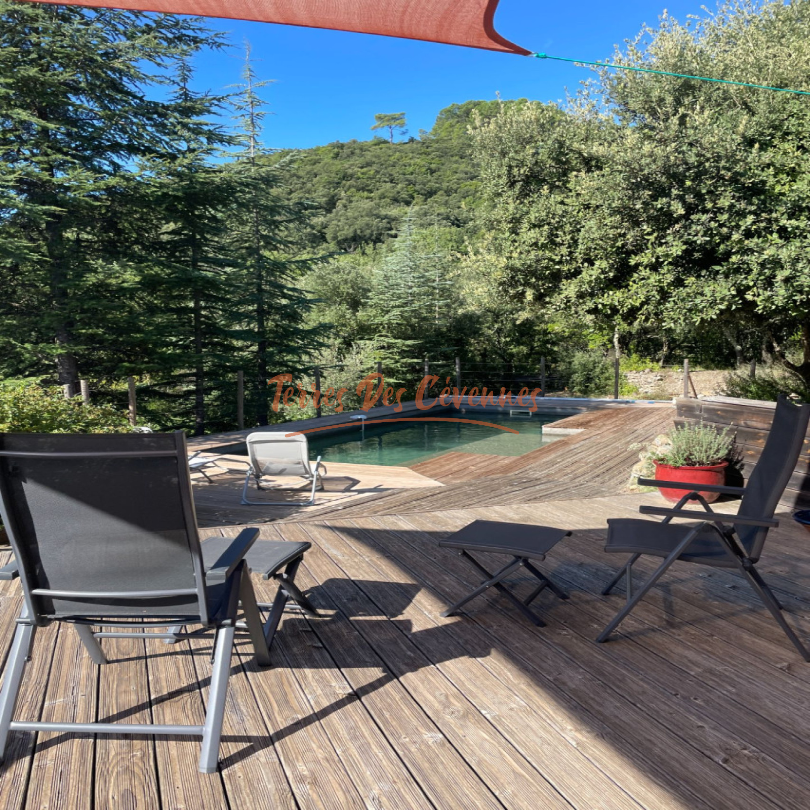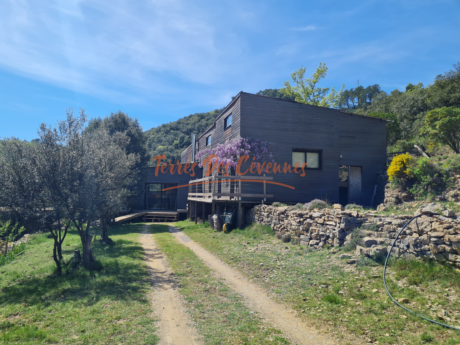 Implantée sur un terrain boisé d’environ 1,7 Ha, elle bénéficie d’une exposition plein sud et d’une magnifique vue panoramique à 180°.