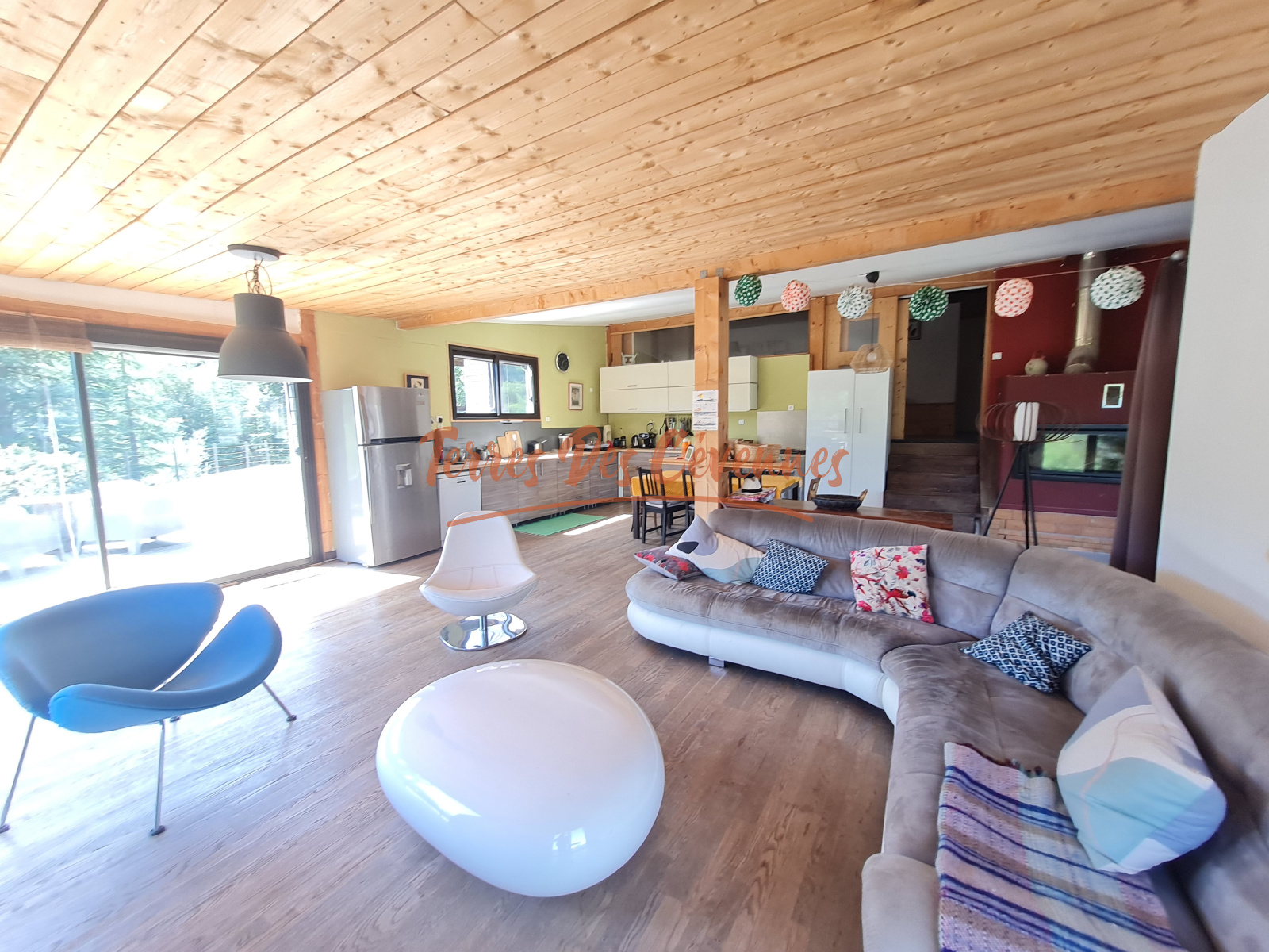 Construite en 2013, cette maison à ossature bois développe environ 200 m² habitables et s’accompagne de dépendances offrant de nombreuses possibilités.